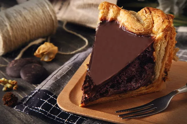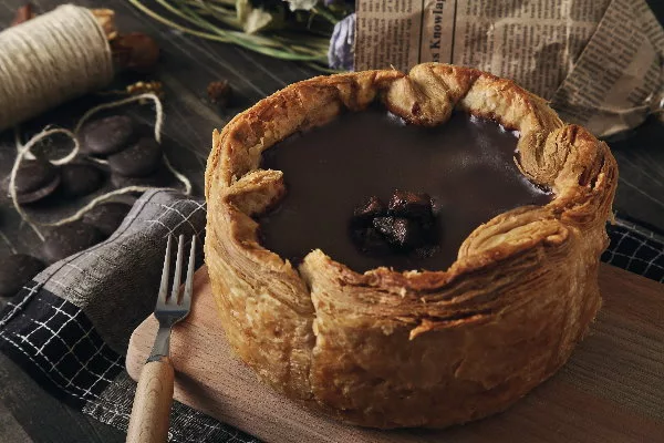 獨家研發的法式手工千層派皮與特選比利時74%巧克力及滑順的乳酪餡
