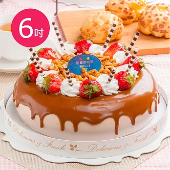 【樂活e棧】生日快樂造型蛋糕-香豔焦糖瑪奇朵蛋糕(6吋-顆,共1顆)水果x布丁