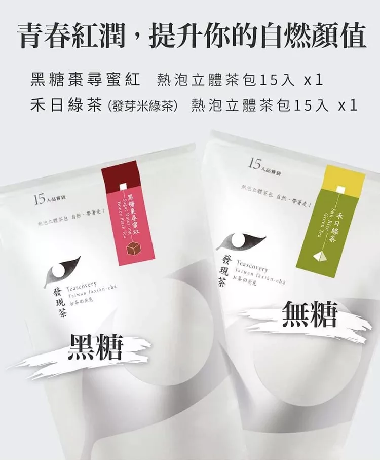 商品說明: 【發現茶】熱泡立體茶包 黑糖棗米綠雙拼組