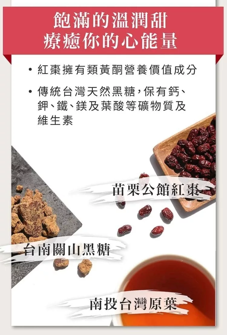 產地:紅茶-南投 紅棗-苗栗公館 黑糖-台南南化