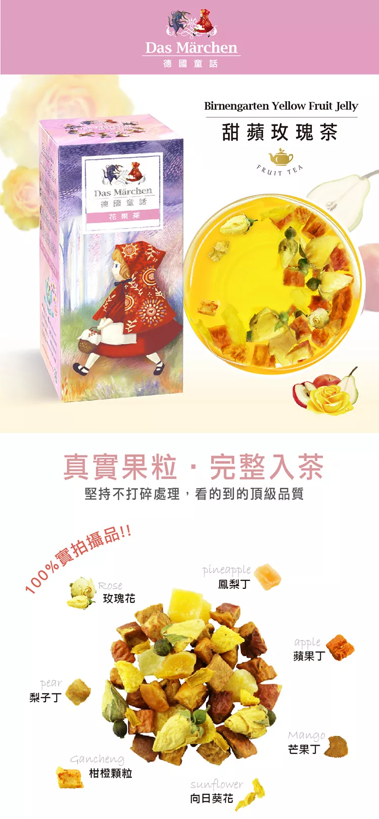 商品說明: 德國童話 甜蘋玫瑰茶(125g/盒) Das Märchen 真實果粒系列