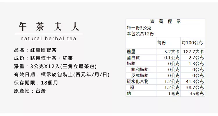→→→→更多詳細”【午茶夫人】紅棗國寶茶-12入/袋”介紹請點我
