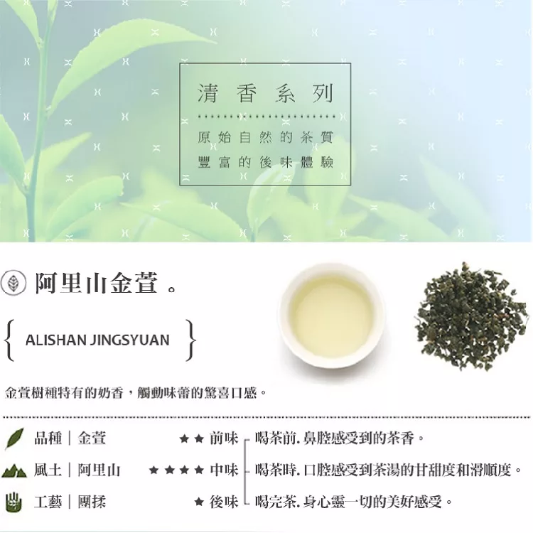 商品描述: 京盛宇 阿里山金萱原葉茶 輕巧盒