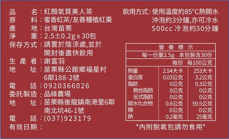 【 紅顏氣質美人茶】(蜜香紅茶*無毒紅棗)
