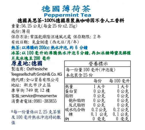 商品說明: 【Messmer 德國美思茶】德國天然薄荷茶