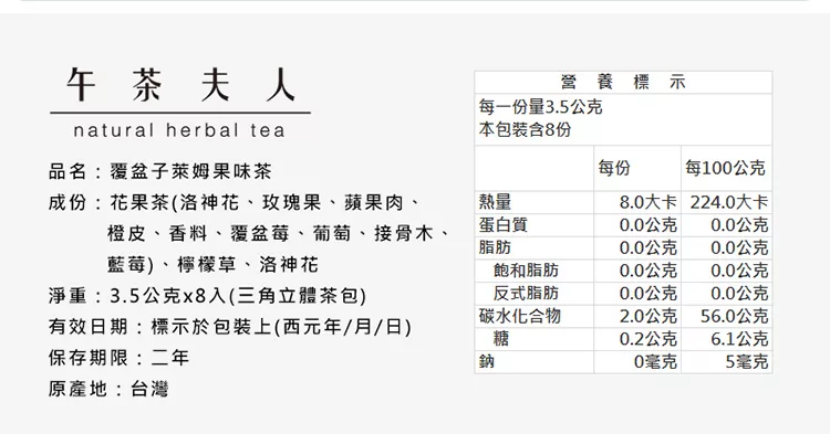 商品描述: 【午茶夫人】覆盆子萊姆果味茶-8入/袋