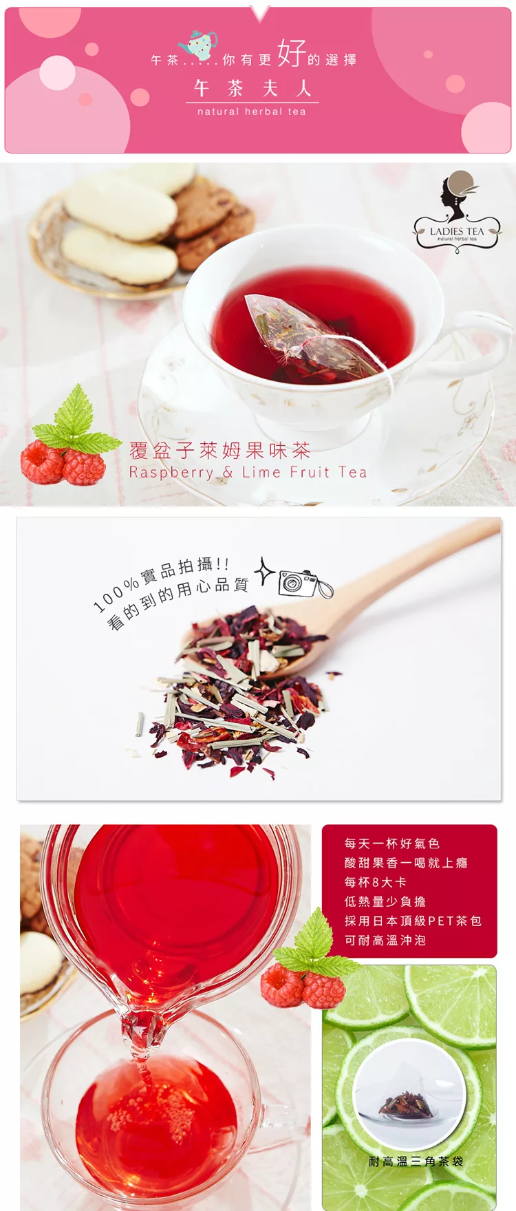 商品說明: 【午茶夫人】覆盆子萊姆果味茶-8入/袋