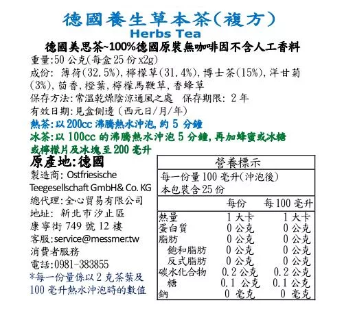 →→→→更多詳細”【Messmer 德國美思茶】養生草本茶 (六種草本複方)”介紹請點我