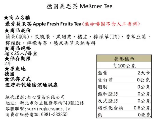 商品描述: 【Messmer 德國美思茶】最愛蘋果茶