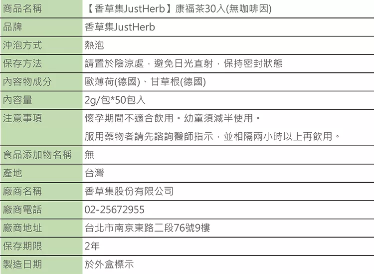 商品描述: 【香草集JustHerb 】康福茶50入(限量加大版)