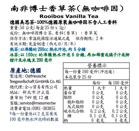 商品描述: 【Messmer 德國美思茶】南非博士香草茶