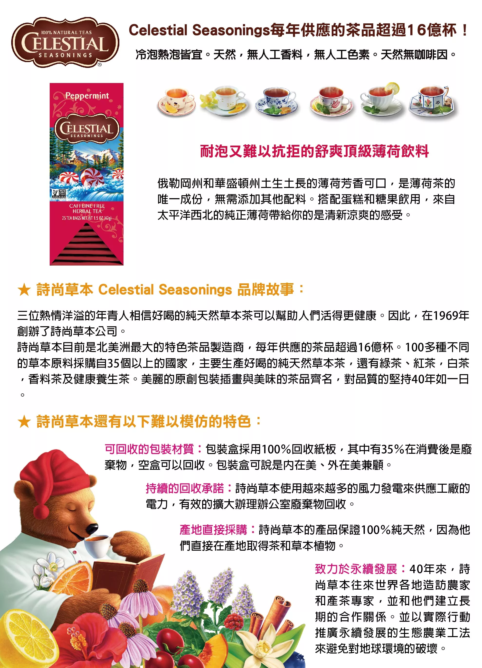 商品說明: 【Celestial 詩尚草本】美國原裝進口薄荷茶(25獨立包)