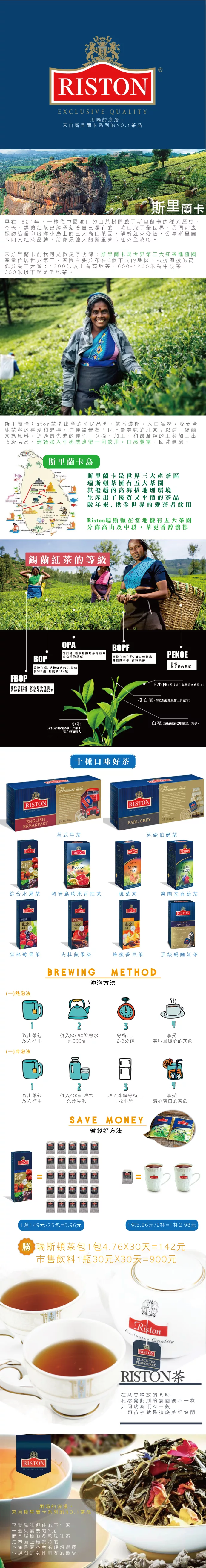 商品描述: 【瑞斯頓Riston】頂級錫蘭紅茶1.5g*25入