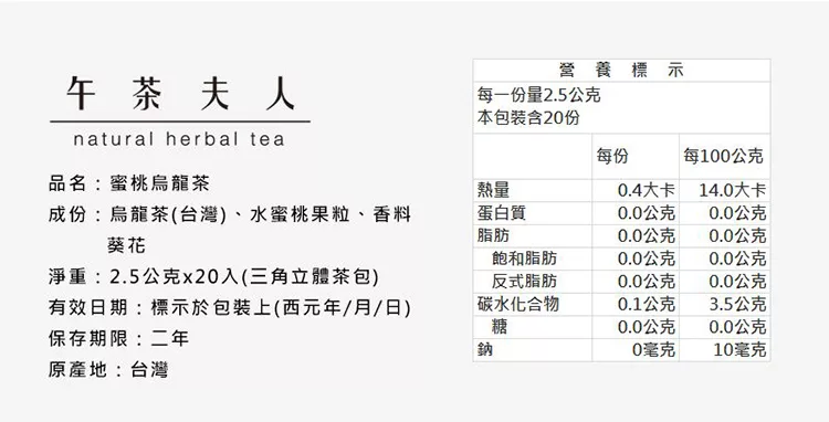 商品描述: 【午茶夫人】蜜桃烏龍茶-20入/罐