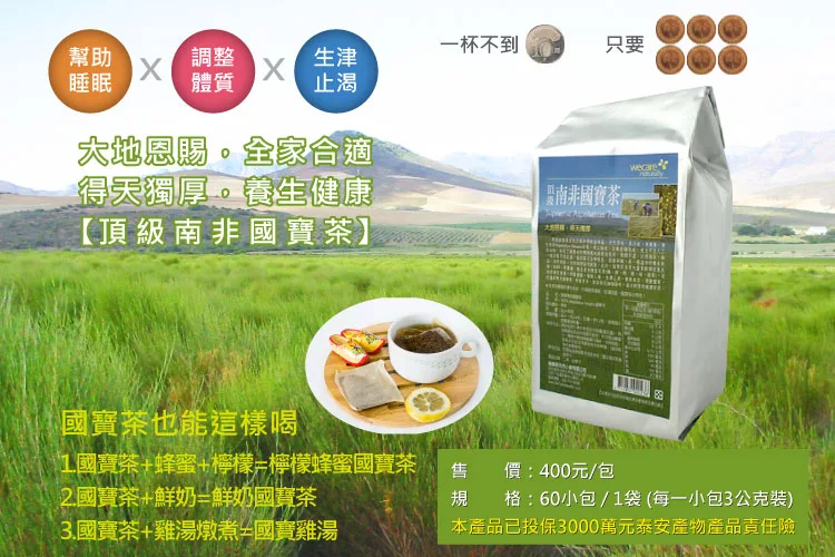 商品描述: WeCare Naturally 頂級南非國寶茶(60小包/袋)