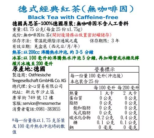 商品描述: 【Messmer 德國美思茶】德式經典紅茶(無咖啡因)