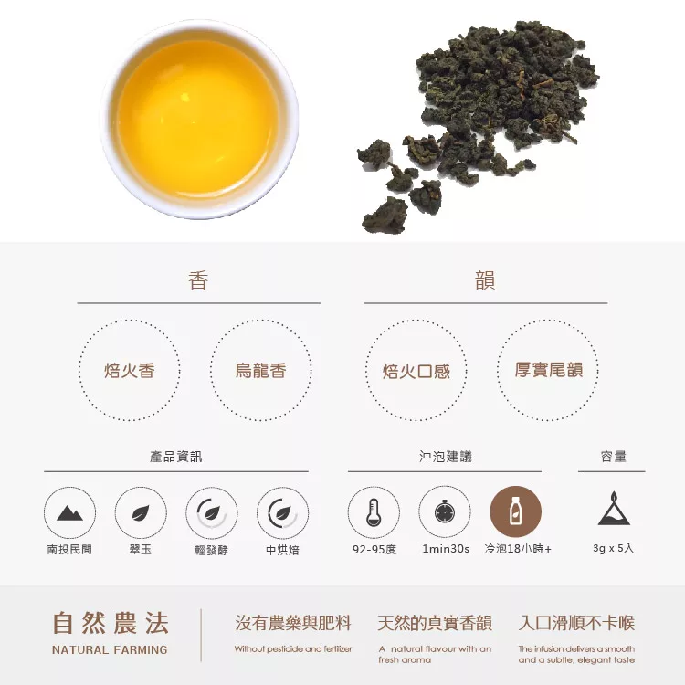 商品說明: [山山來茶]自然農法 茶包 翠玉烏龍(3g x 5入)