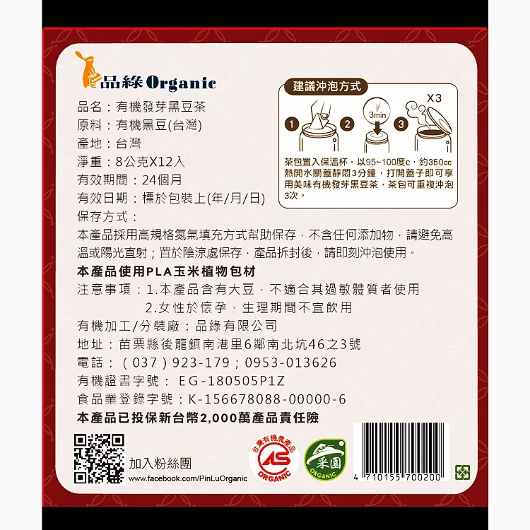 博客來-【品綠】有機發芽黑豆茶–12入 盒訂購網址: https://www.books.com.tw/exep/assp.php/87926/products/N000950912?utm_source=87926&utm_medium=ap-books&utm_content=recommend&utm_campaign=ap-201912