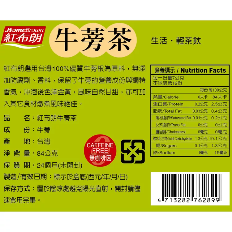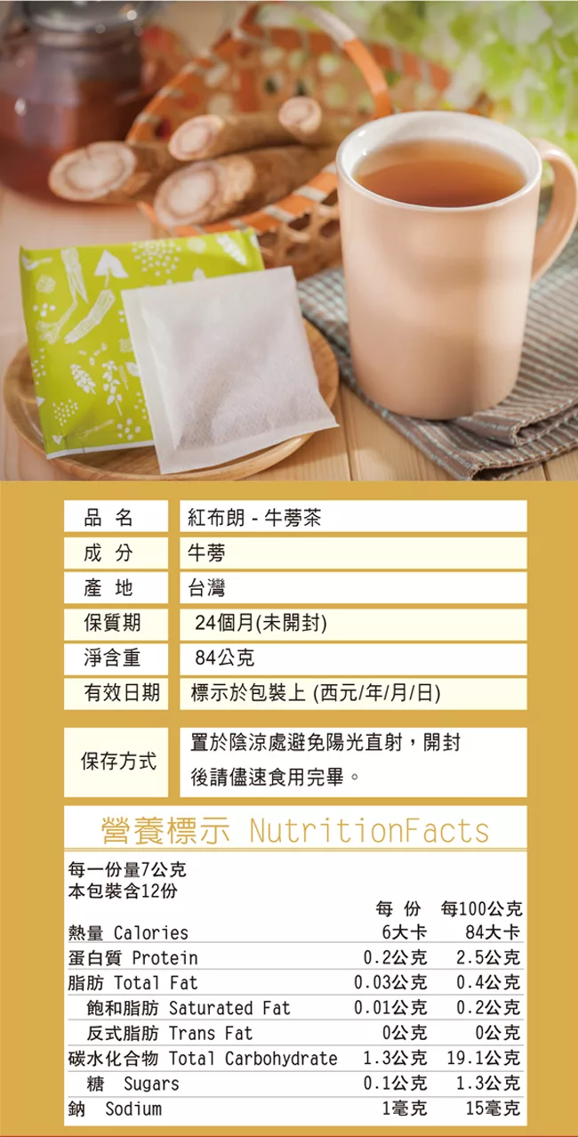 商品描述: 《紅布朗》牛蒡茶(7g*12包/盒)