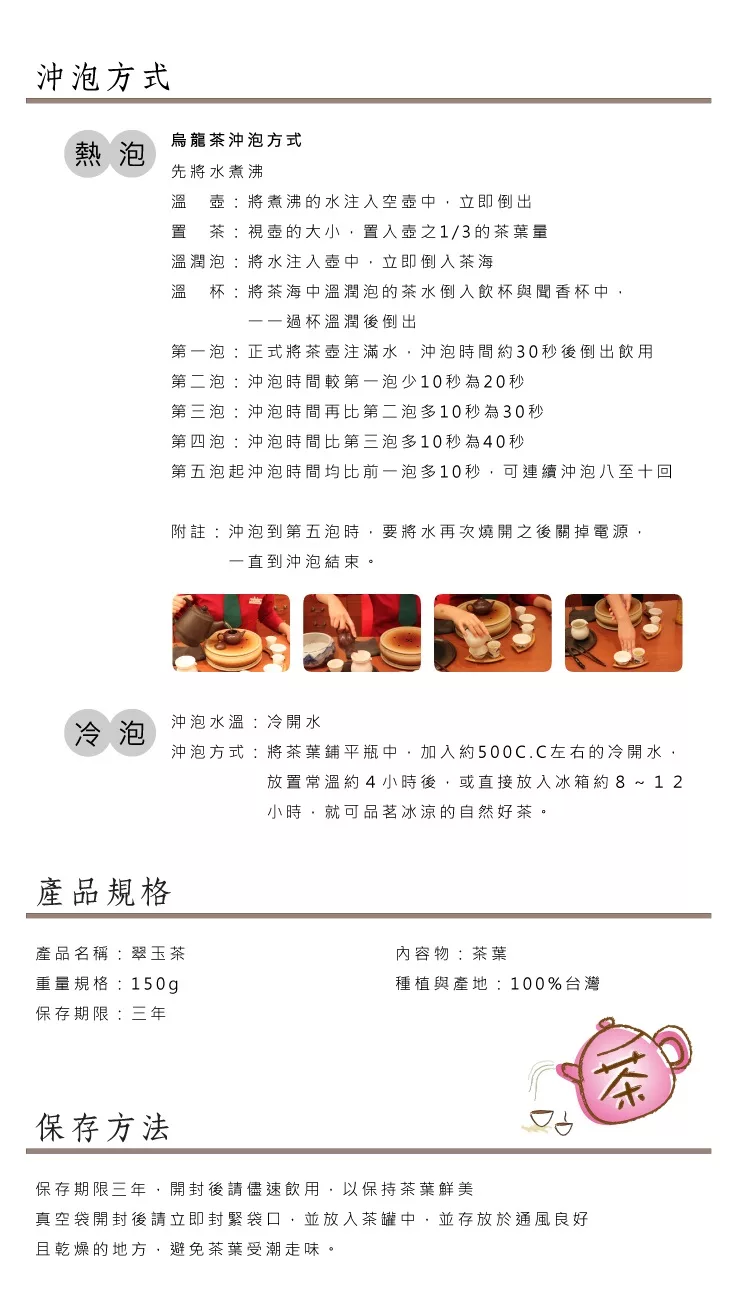 商品描述: 台灣第一產銷履歷-翠玉茶 (150g)