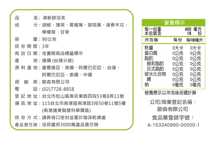 清新舒活茶以綠薄荷和胡椒薄荷搭配,將清涼感進一步提升,重新定義康福茶的體驗。