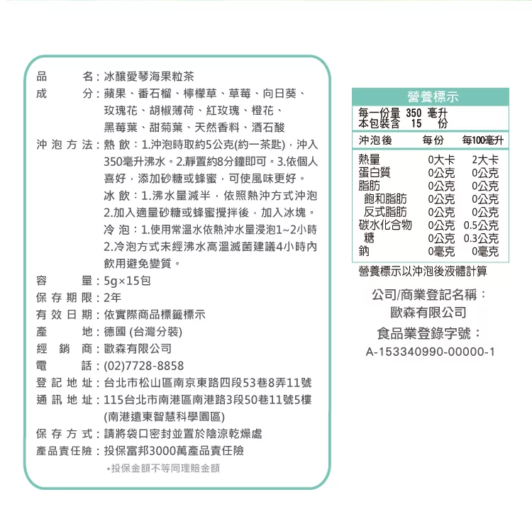 商品說明: 德國童話 冰釀愛琴海果粒茶(15入/盒) Das Märchen 真實果粒系列