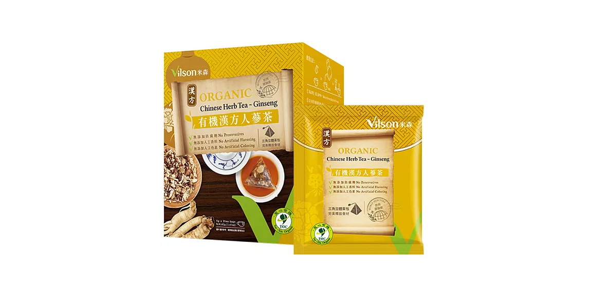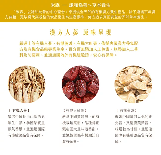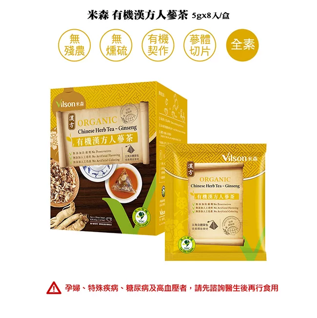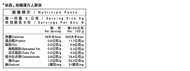 商品描述: 【米森】有機漢方人蔘茶(5g x8包/盒)