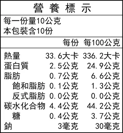 內容量:100公克(10gX10包入) / 盒