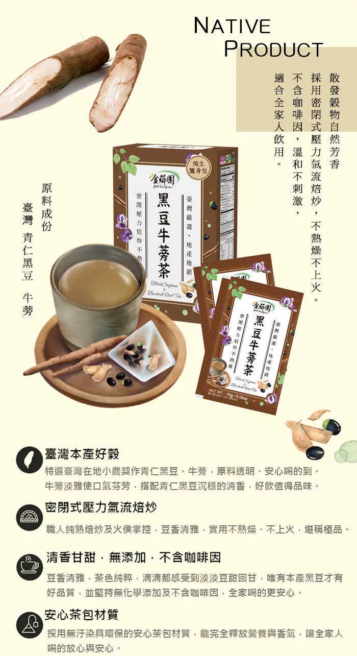 →→→→更多詳細”【金薌園】本產黑豆牛蒡茶10gX10入/盒”介紹請點我