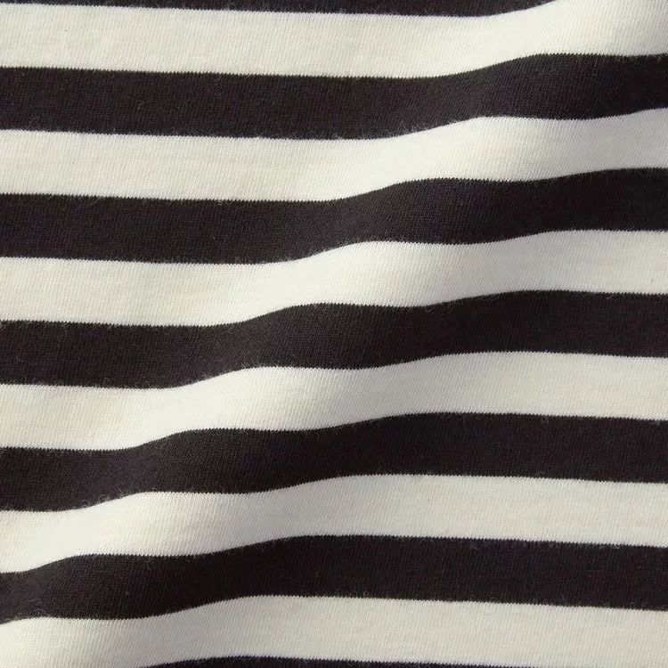品名:女印度棉天竺圓領橫紋長袖T恤黑直紋M