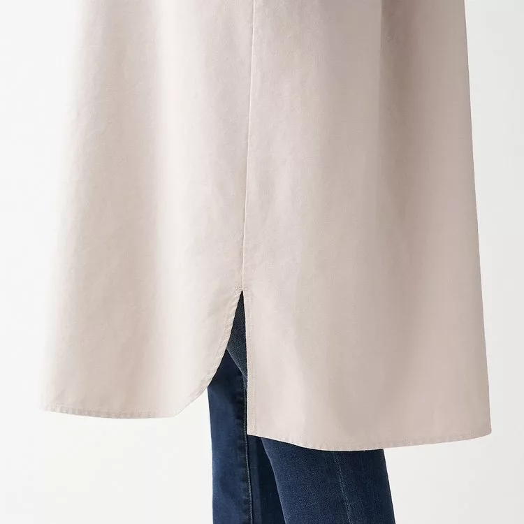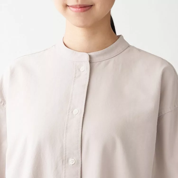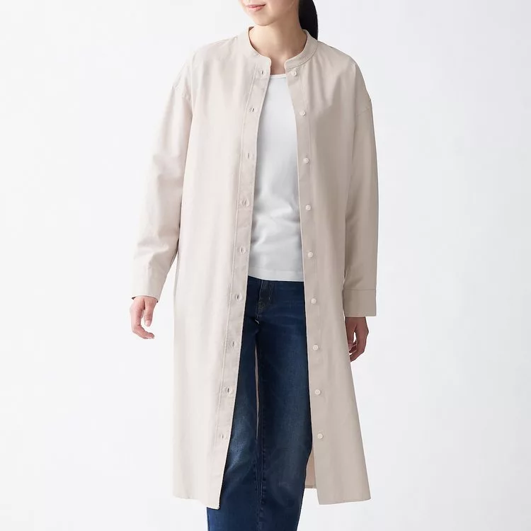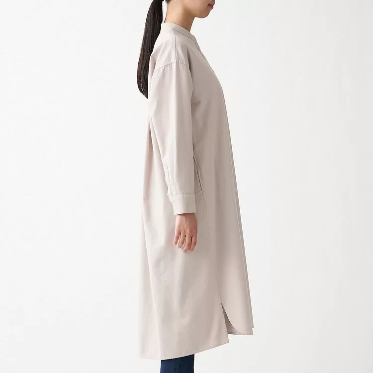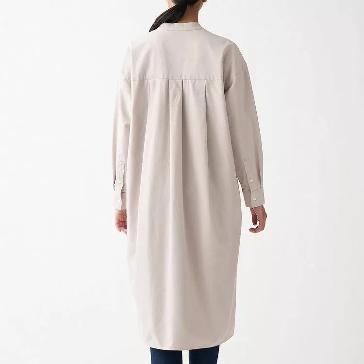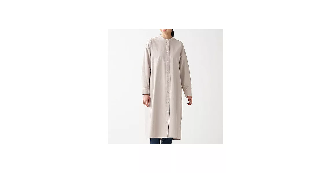 [MUJI無印良品]女新疆棉水洗牛津布立領洋裝淺米M-L