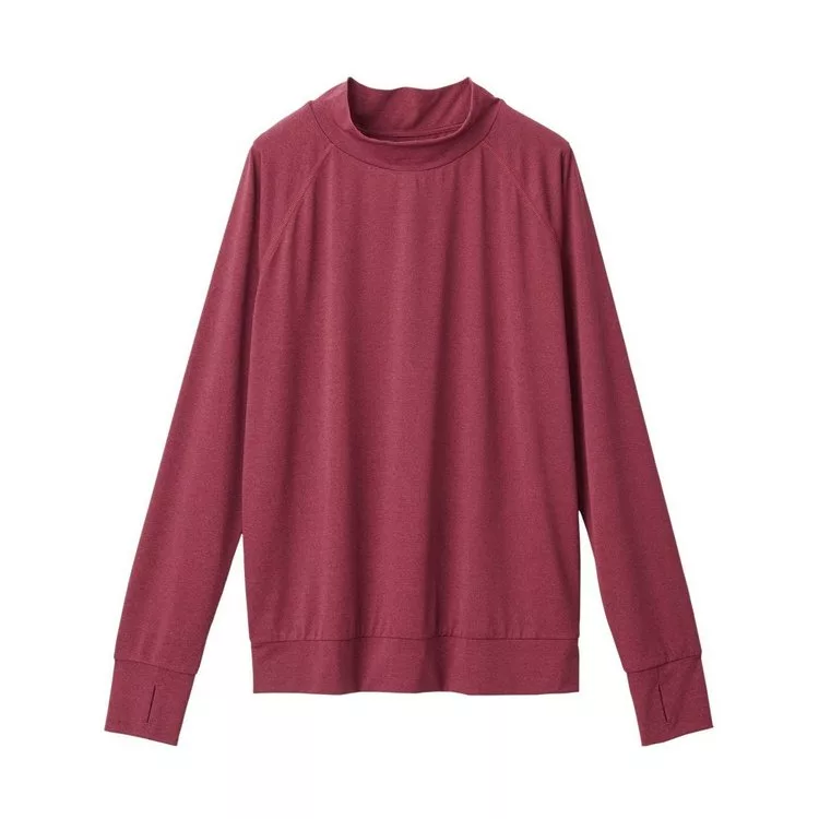 [MUJI無印良品]女聚酯纖維垂墜高領長袖T恤S紅色3