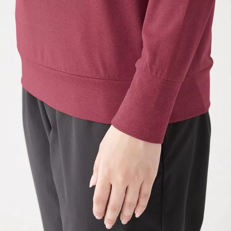 [MUJI無印良品]女吸汗速乾聚酯纖維圓領長袖T恤S酒紅10