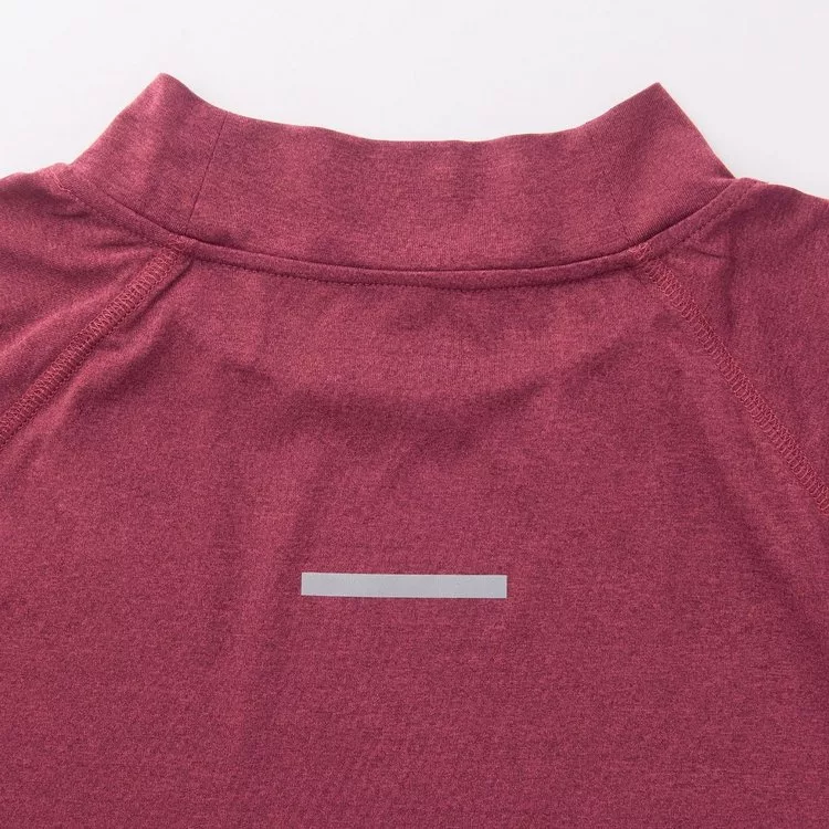 品名:女吸汗速乾聚酯纖維短領長袖T恤暗紅S