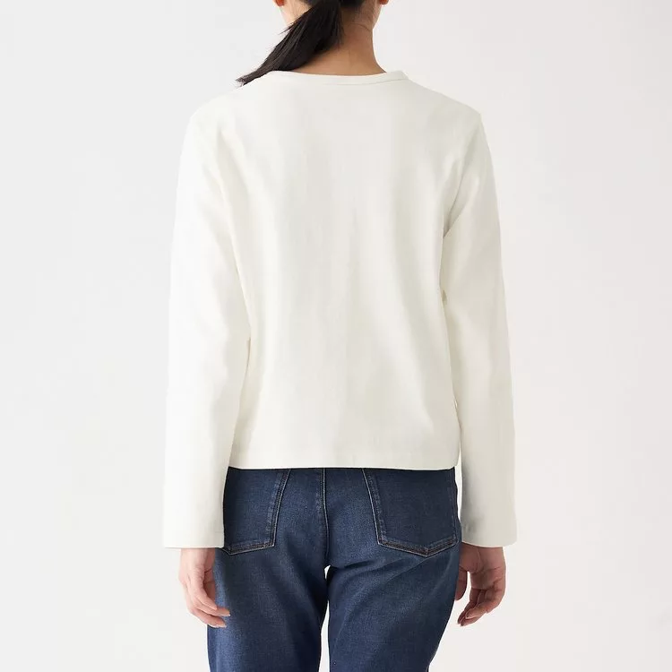 [MUJI無印良品]女有機棉粗織天竺開襟衫M白色