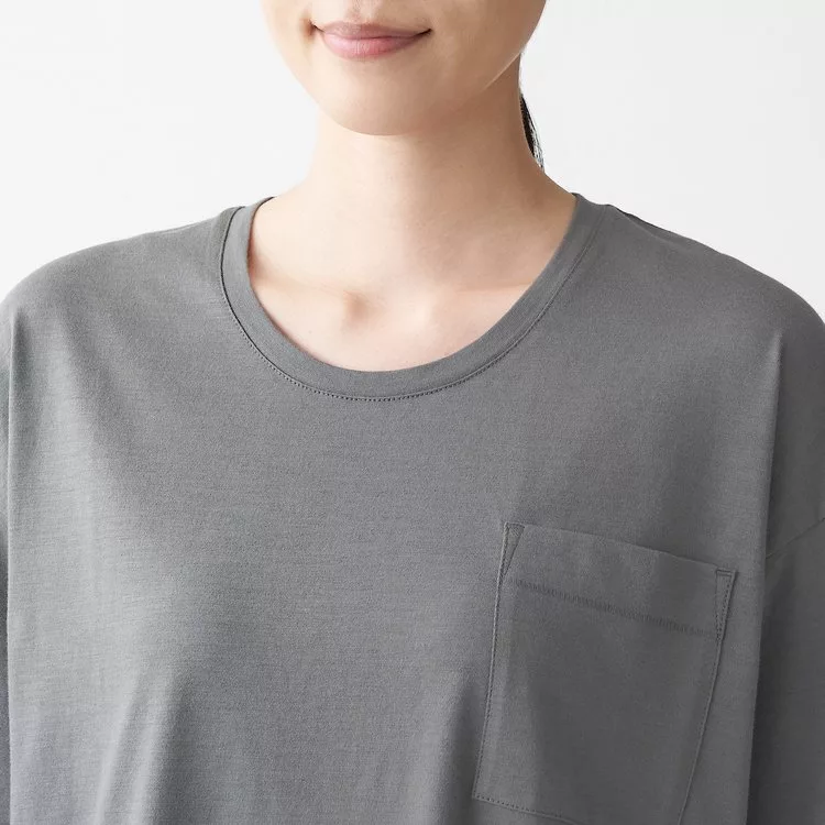 [MUJI無印良品]女嫘縈混棉柔滑短領T恤XL墨灰7