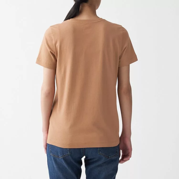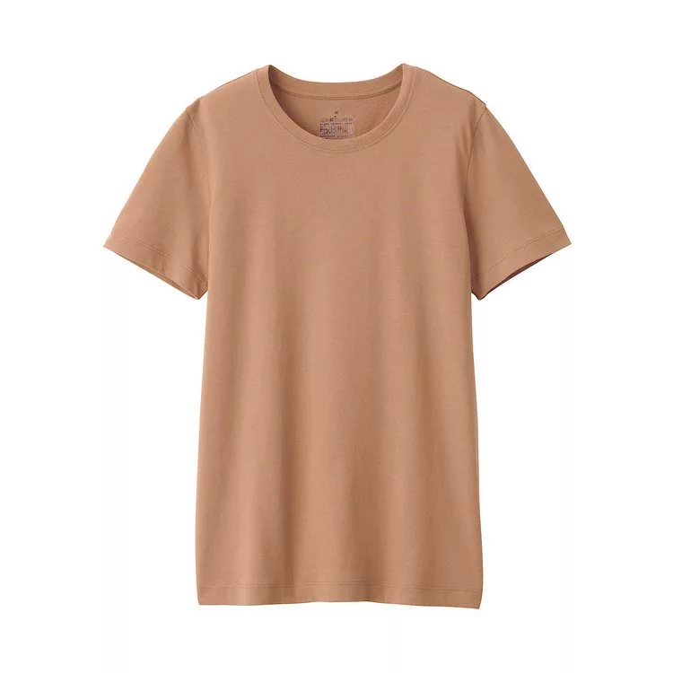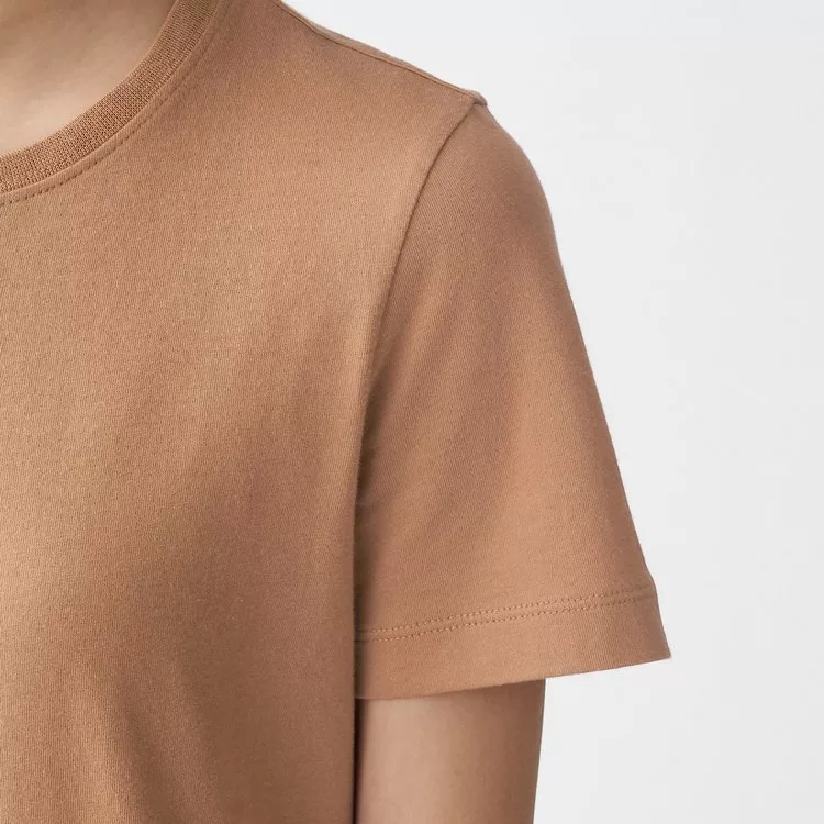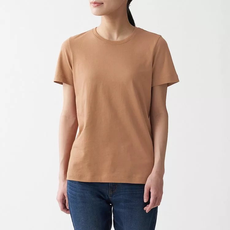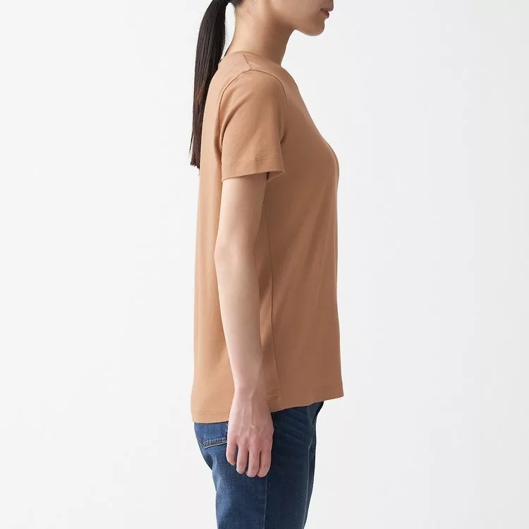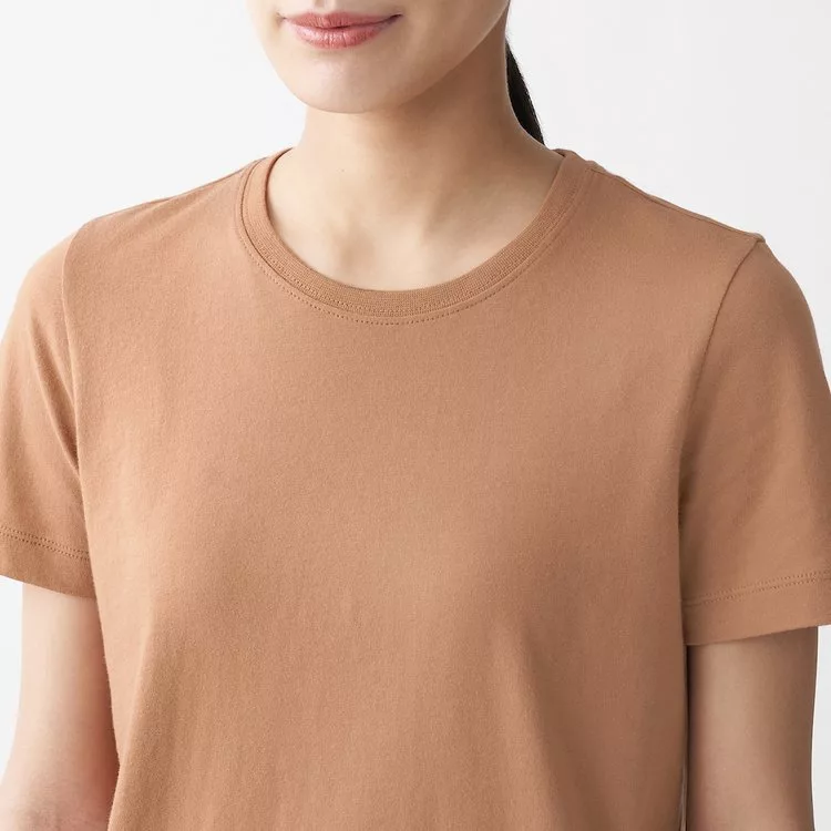[MUJI無印良品]女印度棉天竺圓領短袖T恤S煙燻淺橘