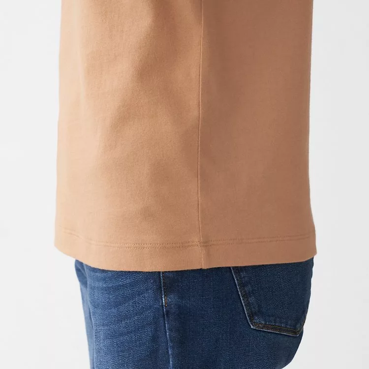 [MUJI無印良品]女有機棉粗織天竺圓領五分袖寬版T恤淺米M~L5