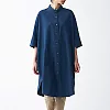[MUJI無印良品]女印度棉牛津布立領洋裝靛藍M-L4