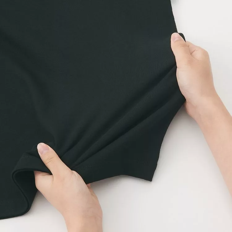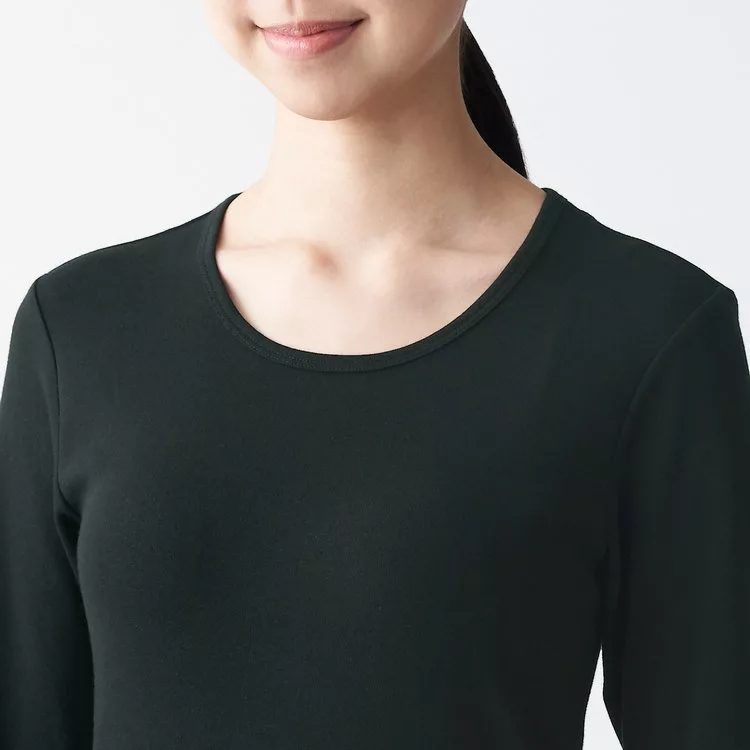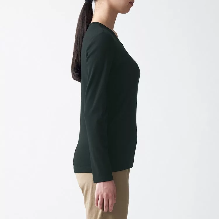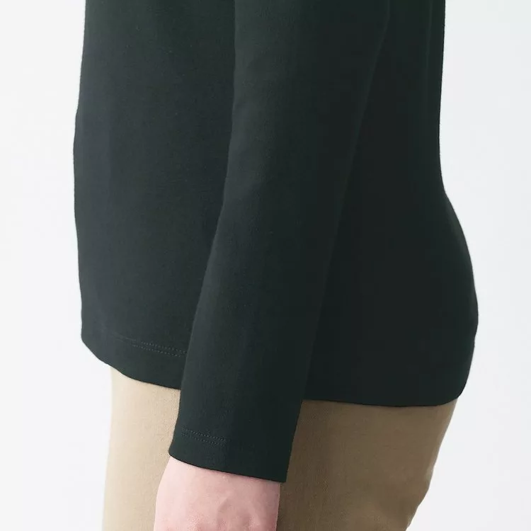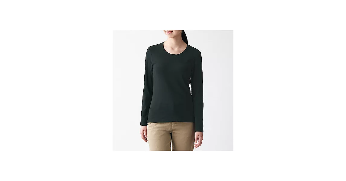 商品描述: [MUJI無印良品]女有機棉混彈性針織圓領長袖T恤S黑色