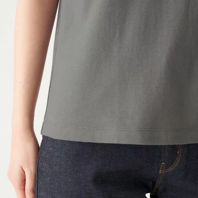 [MUJI無印良品]女嫘縈混棉柔滑短領T恤XL墨灰7