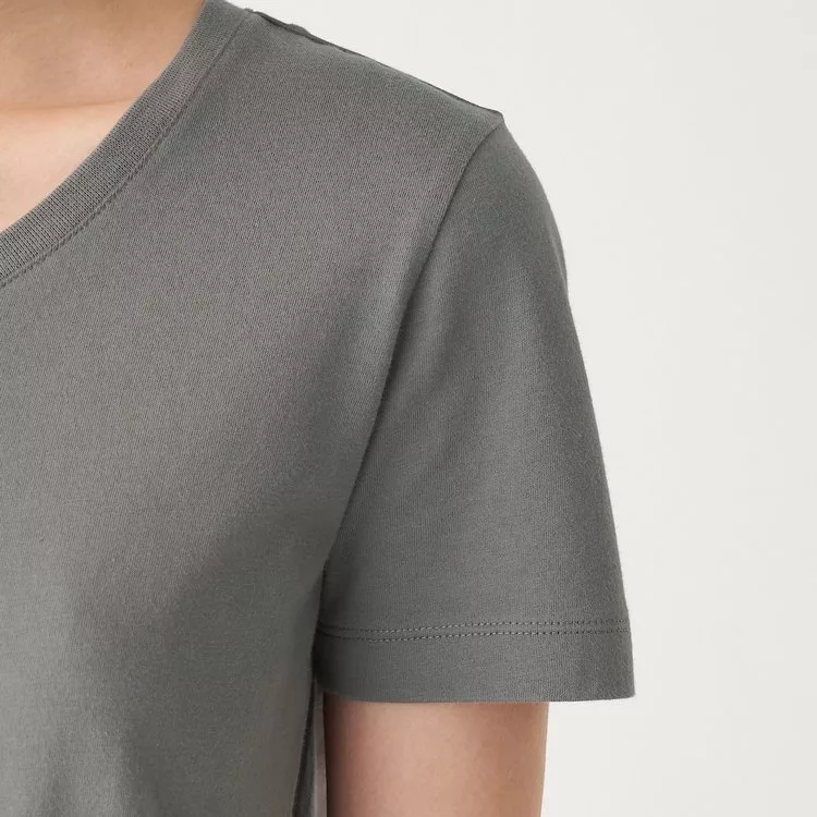 [MUJI無印良品]女印度棉天竺V領短袖T恤XS灰色