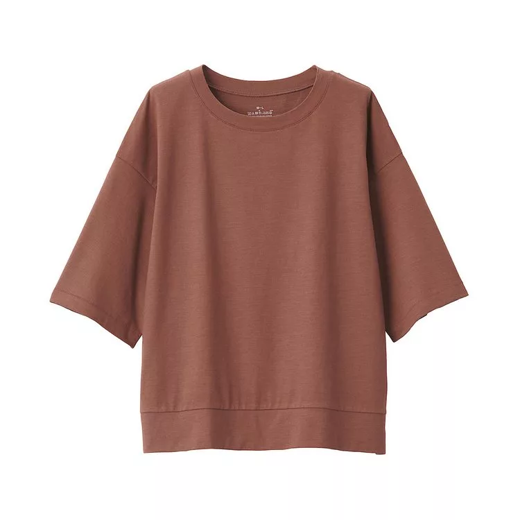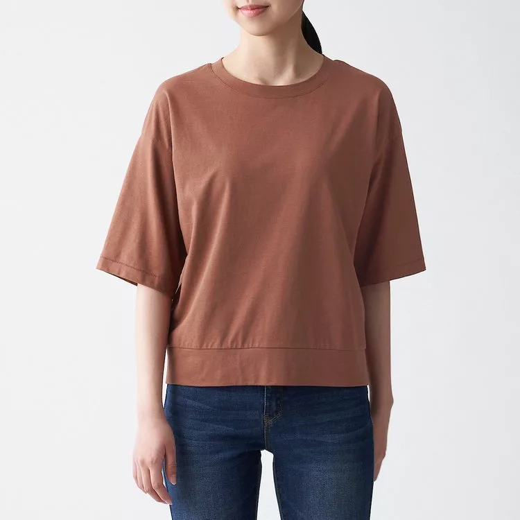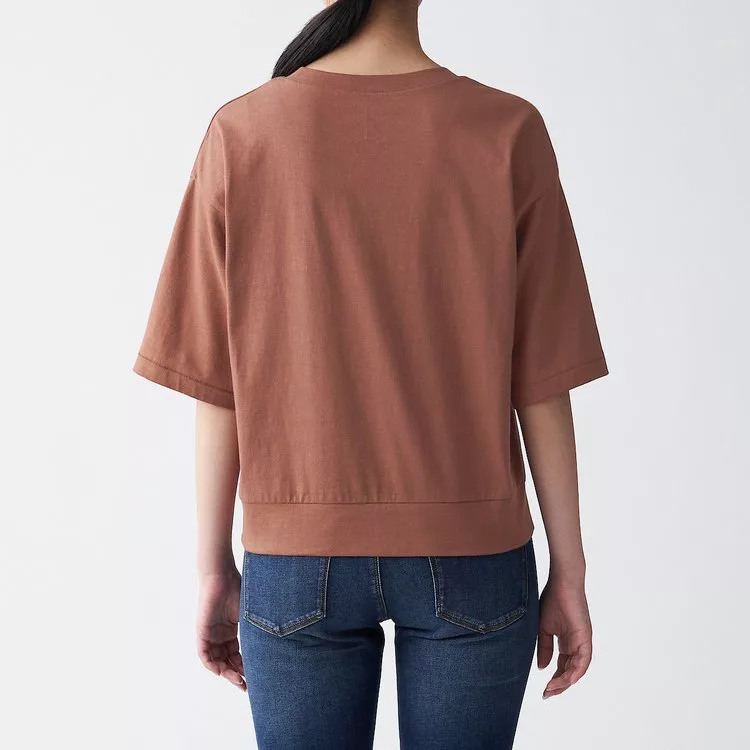 商品描述: [MUJI無印良品]女有機棉節紗天竺五分袖T恤XS-S磚紅