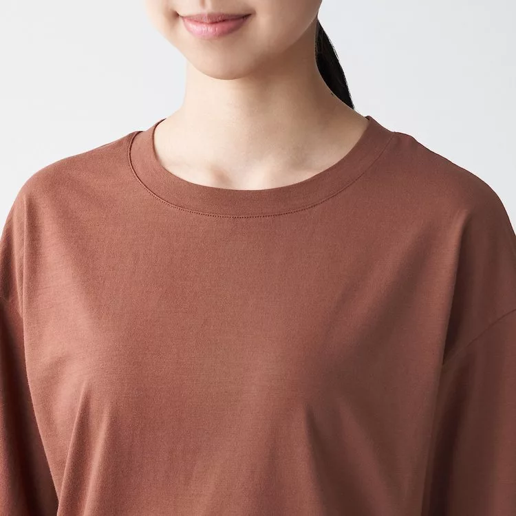 [MUJI無印良品]女有機棉節紗天竺五分袖T恤XS-S磚紅