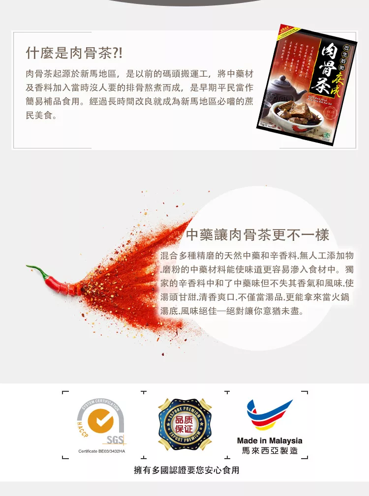 →→→→更多詳細”【巴生後街】慶成肉骨茶(70G)”介紹請點我