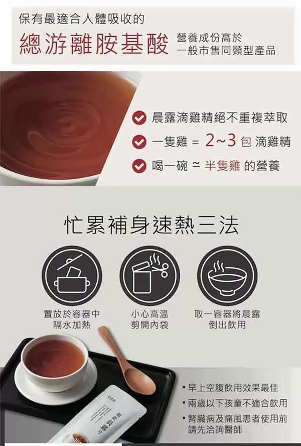 前的農村社會,滴雞湯,,身體無法完全吸收而形成浪費。理想的食用方式應該少量多次,。金牌大師滴雞湯以傳統作法、科學化的保鮮技術,將滴雞湯分裝保鮮,