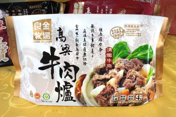 良金牧場主要飼養金門高粱牛,牧場面積7公頃,最多飼養牛隻1300多頭,當時主要活牛銷台灣供應台北環南市場,深受消費者歡迎,民國88年因政策限制牛隻禁止銷台,本場為解決金門牛隻過剩無市場銷售問題,本場開始從事生鮮牛肉分級包裝,同時蒐集研發以金門高粱牛牛肉為材料製作金門高粱牛肉乾,向金門縣政府申請良金牧場附設加工廠,建立良金高粱牛肉乾,成金門特產牛肉乾中金門第一品牌。