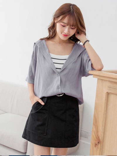 →→→→更多詳細”配色直條紋排釦設計小翻領造型上衣.2色”介紹請點我←←←←←