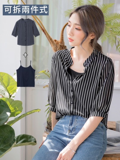 配色直條紋排釦設計小翻領造型上衣.2色訂購網址: https://ibestfun.net/2QoXR