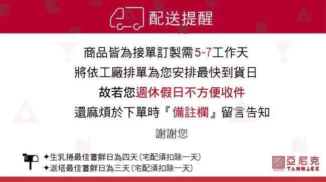 ※注意事項:【每週二12:00結單】 改日期 只能選擇六到貨